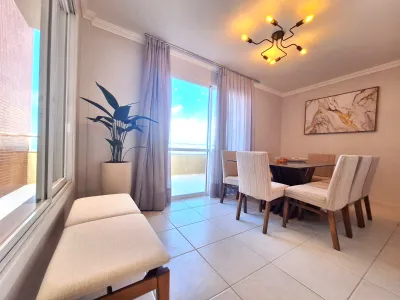 Apartamento na Beira mar com amplo terraço, salão de festas com área gourmet e churrasqueira, área social com estar e jantar, lavabo, sacada confortável de frente para o mar, cozinha, lavandeira e área de serviço, 4 suítes, mobiliado e decorado, todas as peças com ventilação natural, imóvel com ambientes amplos, iluminados e arejados, 2 box para carro com depósito.