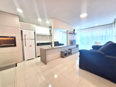 Apartamento semi mobiliado próximo ao mar, com 2 dormitórios (sendo 1 suíte), banheiro social, living 2 ambientes, área de serviço, churrasqueira, vista para o mar, box para 1 carro.