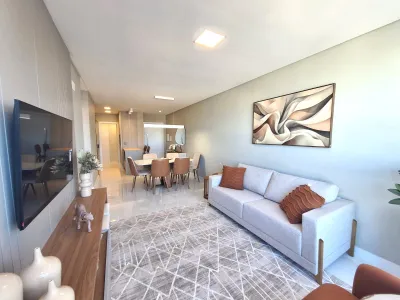 Excelente apartamento de frente, totalmente mobiliado e decorado, com 2 suítes, lavabo, área social com estar, jantar, gourmet e churrasqueira, cozinha americana, ambientes integrados em conceito aberto, lavanderia, box pra carro. Prédio alto padrão com infra completa