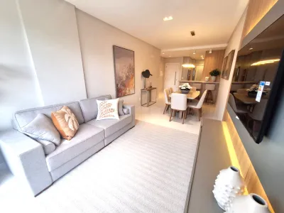 Apartamento com vista para o rio e para o pôr do sol, mobiliado, decorado e equipado com 2 dormitórios, sendo 1 suíte, ampla área social com estar, jantar, gourmet e churrasqueira, cozinha americana, ambientes integrados em conceito aberto, banheiro social, lavanderia, box pra carro.