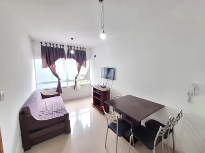 Apartamento mobiliado, próximo ao mar, frente para o sol da manhã, com 1 amplo dormitório, banheiro social, sala de estar e jantar, churrasqueira, cozinha, box para carro. Prédio 4 andares com salão de festas e terraço, hall social.